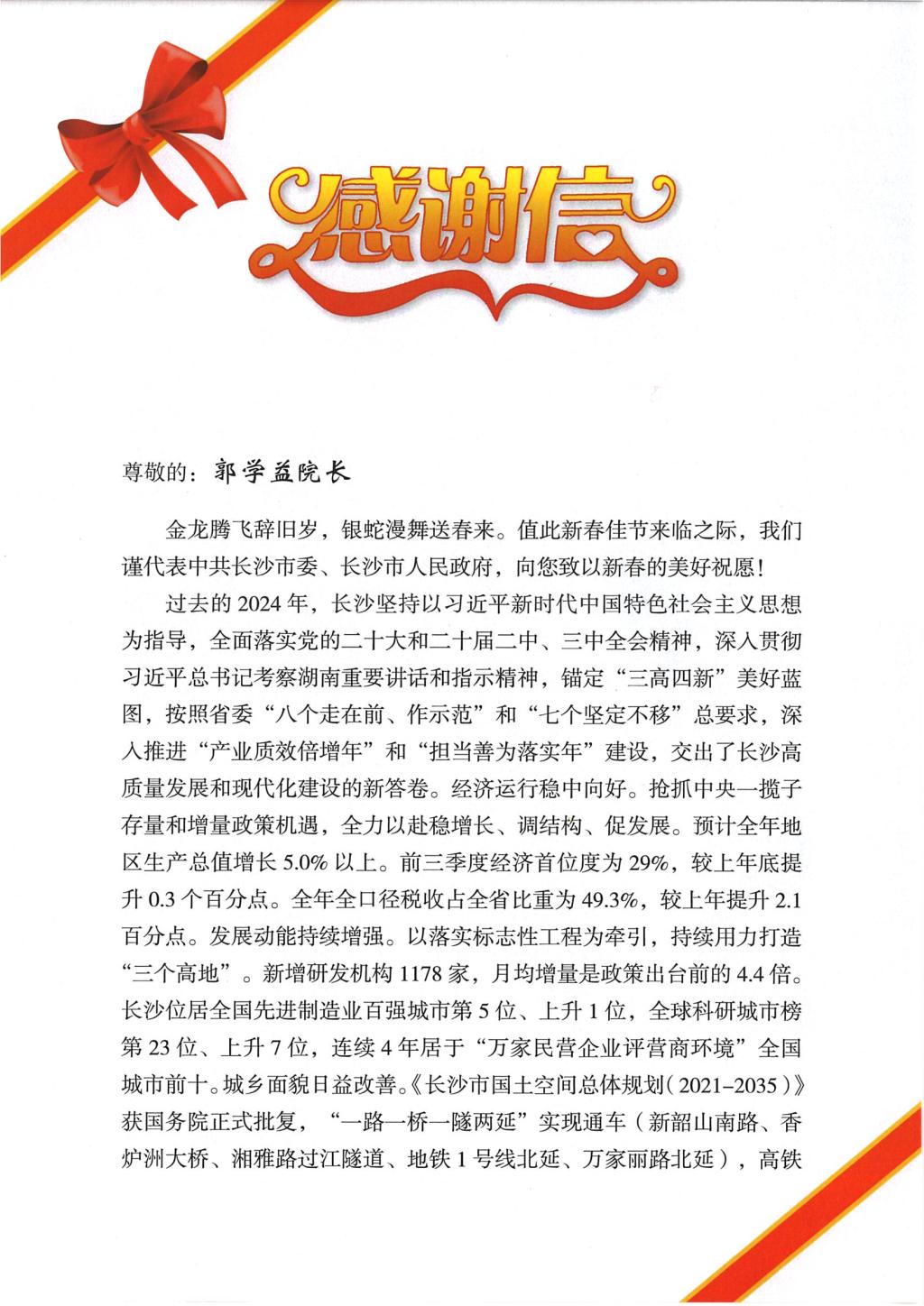 点赞!长沙市委、市政府向能创院发来感谢信