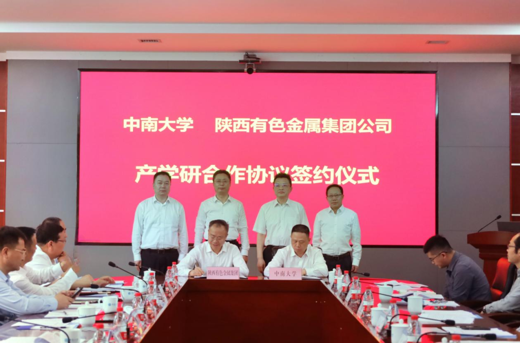 5月11日,中南大学与陕西有色金属控股集团有限责任公司(以下简称“陕西有色金属集团”)在科教楼三会议室签署产学研合作协议。陕西有色金属集团党委书记、董事长吴群英,总经理莫勇、副总经理黄忠良,中南大学校长李建成,副校长郭学益、柴立元参加活动。