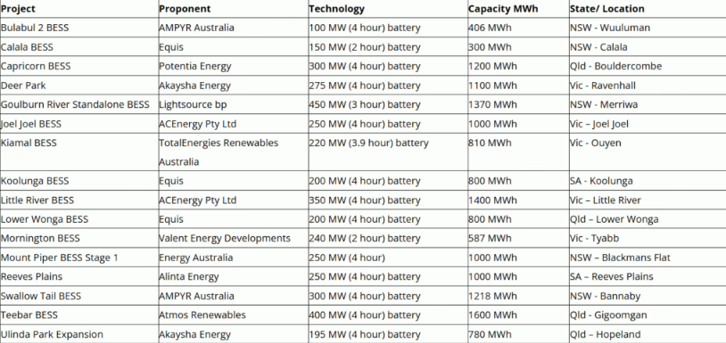 中标情况:Atmos Renewables 的 400MW/1600MWh Teebar 电池成为最大单体项目;Equis 获得三项合计 550MW/1900MWh;Akaysha Energy 获得 Deer Park 与 Ulinda Park 储能扩建项目支持;其余中标方包括 AMPYR、TotalEnergies、Lightsource bp 等。